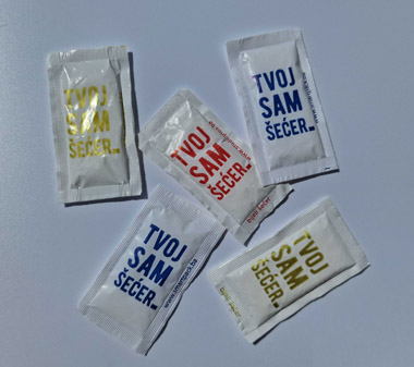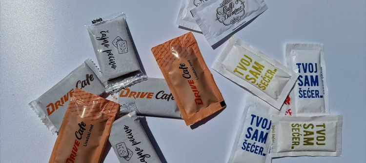 U mogućnosti smo vam ponuditi ugostiteljski šećer za Vaš objekt u vrećicama pravokutnog oblika s 4 vara. U pondi imamo univerzalno pakiranje bijelog i smeđeg šećera u težinama od 4,5,6 ili 7 grama, također nudimo i izradu dizajna vrećice prema zahtjevu kupca. Vrećice su pakirane u transportne kutije sadržaja 100, 500 ili 1000 komada.