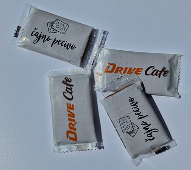 Pojedinačno pakiran keks koji će svaki gost rado popiti uz kavu te se rado vraćati i postati stalan gost. U mogućnosti smo vam ponuditi keks za Vaš objekt u vrećicama pravokutnog oblika. U pondi imamo univerzalno pakiranje keksa, također nudimo i izradu dizajna prema zahtjevu kupca. Keksi su pakirani u transportne kutije sadržaja 400 komada.